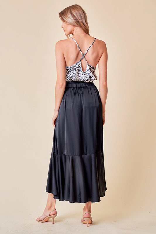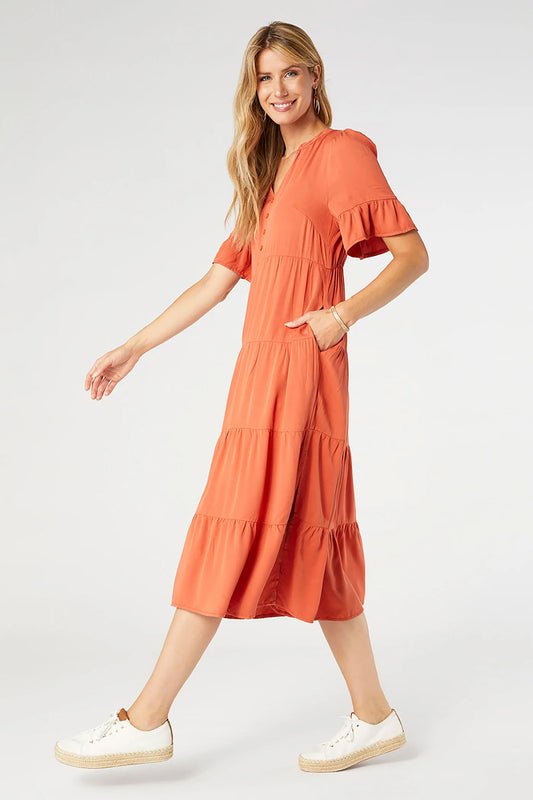 Plus Ruffled Sleeve Waist Elastic Tiered Plisse Woven Dress