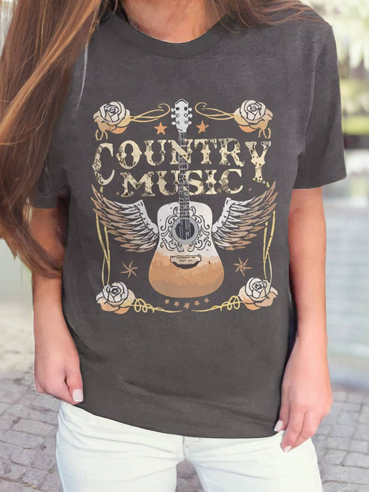 Country Music Guitar Graphic Print Crew Neck T Shirt