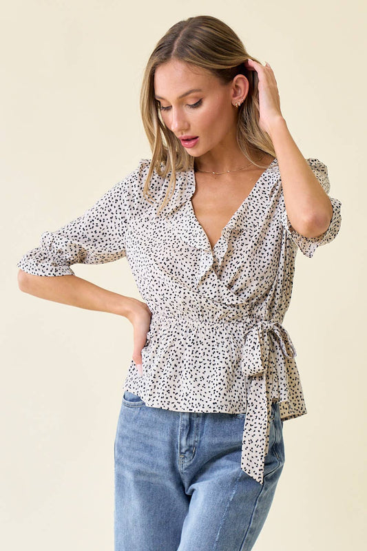 Ruffle Wrap Leopard Blouse