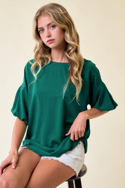 Back Buttoned Bubble Sleeve Woven Top