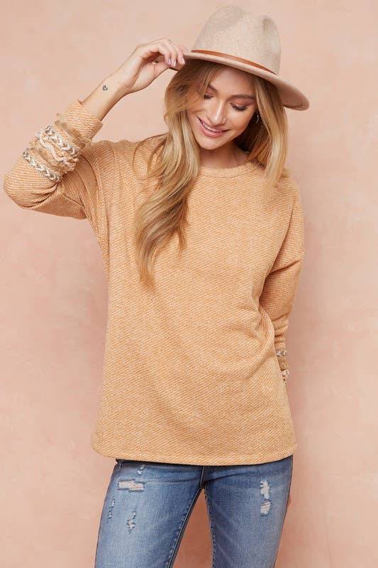 Aztec Trimmed Sleeve Detail Top