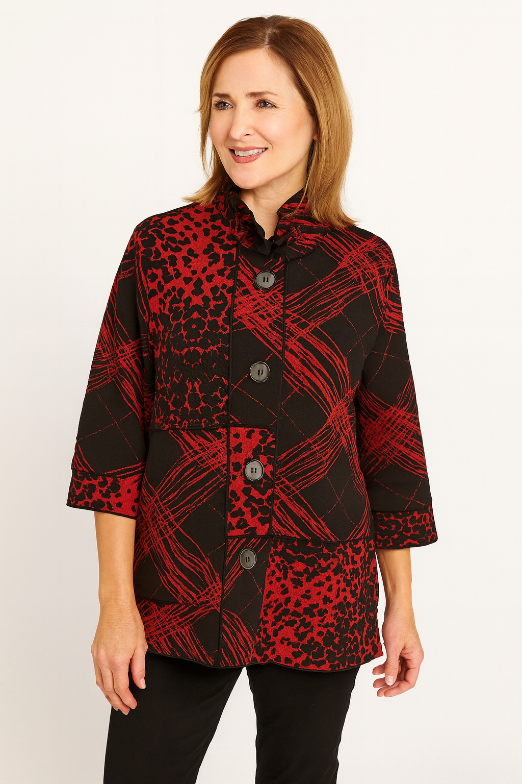 Expertly made by Kamana, the Women's Red Rock Patch Button Jacket radiates elegance and refined style. This high-quality boutique outerwear brings a distinctive flair that highlights your unique personality. More than just a jacket, it’s a statement piece designed to elevate your wardrobe. Make a memorable impression everywhere you go with this exclusive Kamana creation.