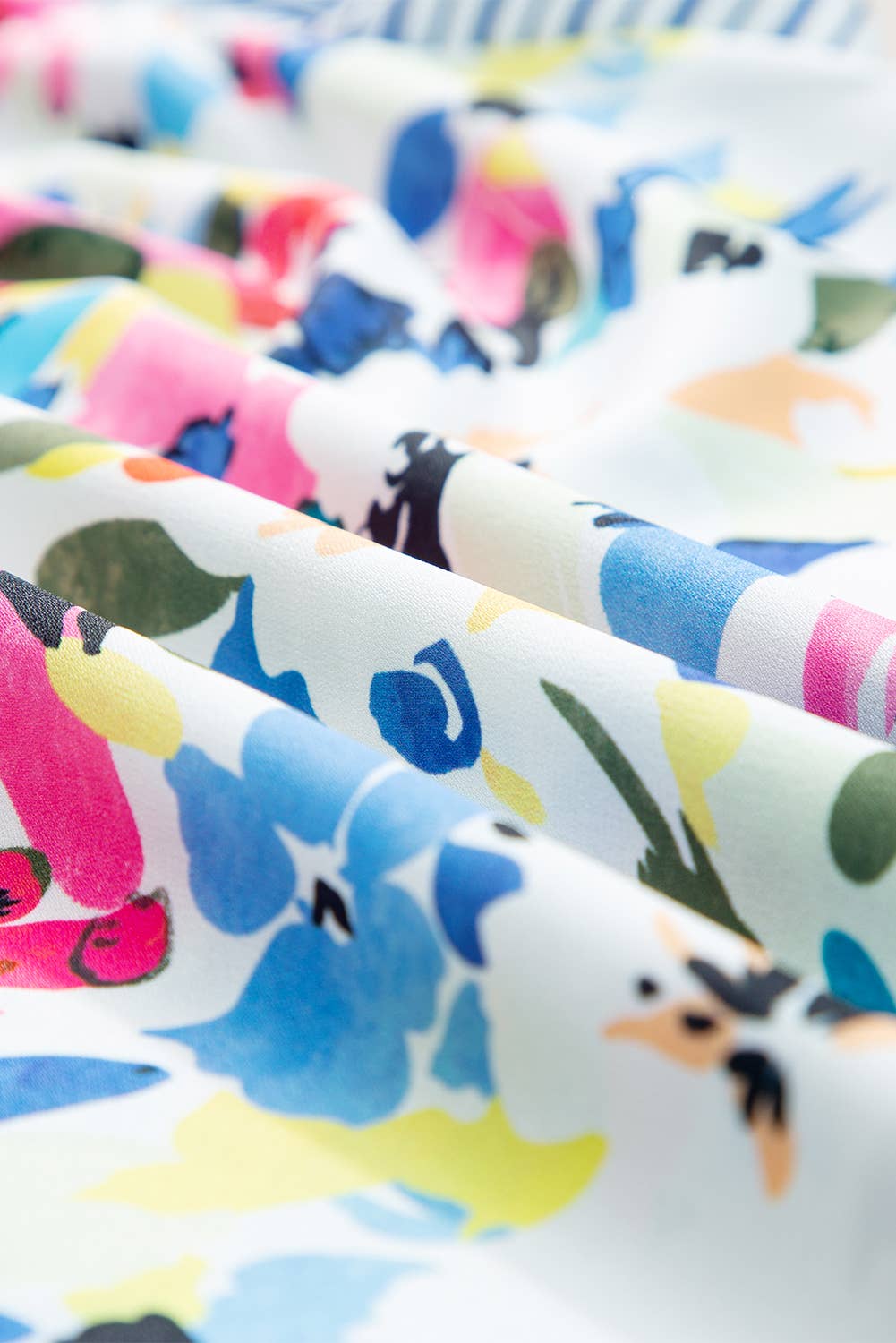 Indulge in the beauty of our Floral Print Striped Ruffled Sleeve Blouse. This high neck tee boasts a stunning floral print and multi pattern design, exuding elegance and sophistication. The ruffled sleeves add a touch of femininity, making this blouse a must-have for any fashion-forward woman. Elevate your style with this luxurious piece.